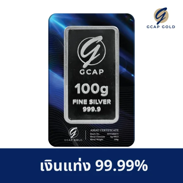 เงินแท่ง 99.99% ขนาด 100 กรัม GCAP GOLD จัดส่งฟรี แผ่นทอง การ์ดเงิน เงินแท่ง เงินแท้